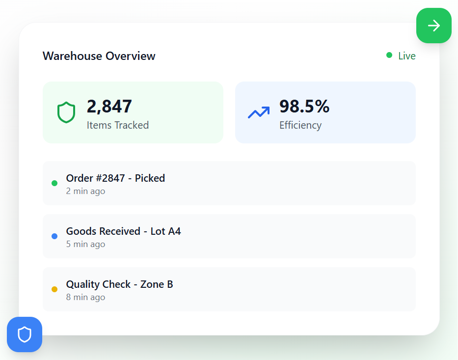 Real-time dashboards and analytics give you full control over warehouse operations.