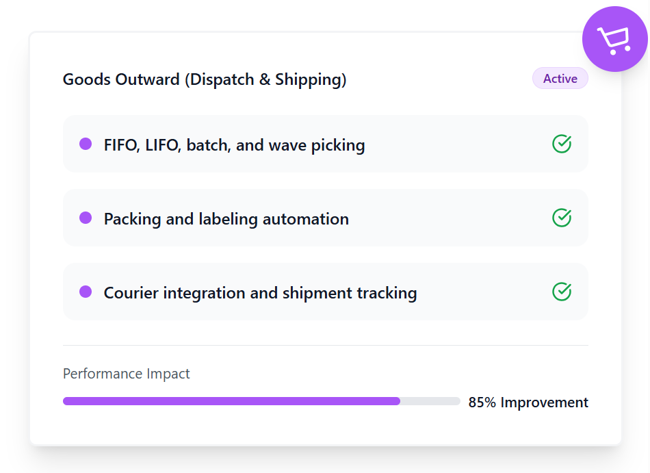 Ensure accurate, timely dispatches with integrated picking, packing, and shipping workflows.