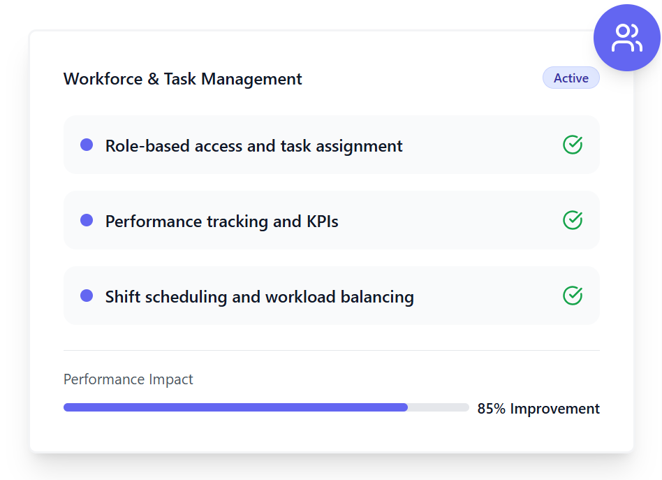 Empower your team with clear task assignments, performance tracking, and mobile support.